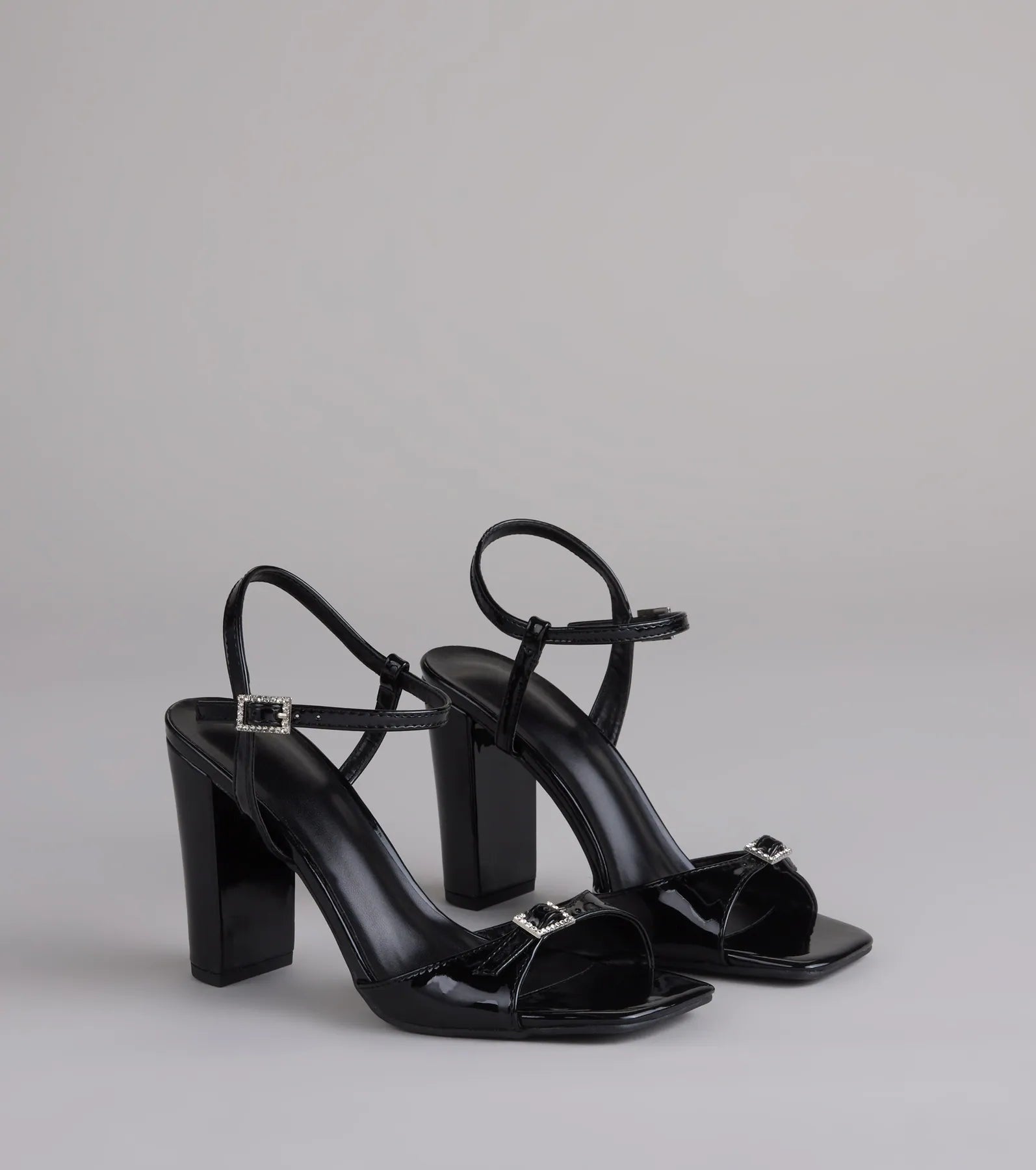 Booked And Busy Rhinestone Buckle Block Heels