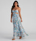 Got vacay on the mind? This floral chiffon maxi dress is perfect for a trip to Bora Bora! Features a sleeveless. halter neck with tie-closure. ruched bust. and a cutout bodice atop a flowy. tiered maxi skirt. Complete the look in wedges and chic sunglasses.