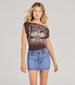 Born to be wild? This graphic crop top is perfect for showing off your rebel side. It features a trendy off-shoulder neckline. a front graphic with a script that reads "Vintage Ride/Born To Be Wild". and a fitted crop hem. Complete the look in a denim skort and sneakers for a casual hang.