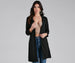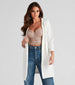 Make boss moves in this blazer that takes you from the office to happy hour in sleek style! The blazer features a draped open front. a lapel collar. three-quarter-length sleeves. hidden side pockets. and a long-line length hem. Layer the blazer with a dazzling bustier for a fashionista-worthy outfit!