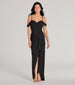 When it comes to looking elegant. the Bridget off-the-shoulder crepe formal dress delivers a sophisticated allure at black-tie soirees and weddings! Designed with a sweetheart neckline and short-sleeve cuffs. this dress features a built-in padded underwire bust and flexible boning for a flawless and slim silhouette. The front slit with ruffle trim adds a touch of femininity. while the floor-length hem guarantees a stunning entrance. Complete the look in dressy block heels and a clutch!
