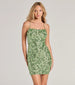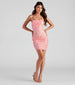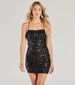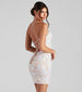 Show up and stun this formal season in the gorgeous Brynlee bodycon mini dress! She features a sleeveless square neckline. a built-in padded bust. halter spaghetti straps. an open back with a lace-up design for a customized fit. and a short. curve-hugging silhouette. The lined mesh fabric features all-over sequin embroidery in an intricate scroll pattern. Style the formal mini dress with clear heels for a night to remember.