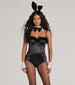 Channel an iconic bunny bombshell look this Halloween in this satin corset bodysuit! It features a sleeveless sweetheart neckline with a marabou feather trim. a sexy corset bodice for a snatched silhouette. adjustable spaghetti straps that you can remove to make it strapless. and a cheeky form-hugging fit. Complete your costume with the satin bunny ears and tail set. bowtie and cuff set. and glitzy rhinestone tights!