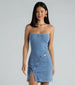 Button Up Babe Denim Strapless Mini Dress