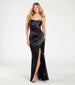 You'll be the most elegant babe in the Caitlin satin formal dress designed with a striking sequin applique sheer bodice that sparkles under the light and a curve-loving mermaid silhouette.