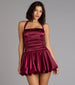 Serving bold and flirty in one move—this satin skater dress brings instant wow-factor. With its playful bubble hem and glossy finish. it's basically your VIP pass to being unforgettable.
