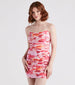 Captivate the crowd in this floral strapless dress at brunches or parties! It features non-slip grip lining along the neckline. side ruched seams that hug your curves along the bodycon silhouette. and a mini-length hem. The dress is designed with a watercolor floral print on mesh fabric with a stretchy knit lining. Complete the look in metallic block heels.