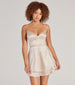 Captivate in this charming satin skater dress at parties! The short dress is designed with an alluring strappy back and flattering ruffled short-length hem perfect for twirling. Complete the look with block heels.