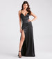 Strut with style at your next special event in the gorgeous Carmen satin formal dress. She features a sleeveless. deep V-neckline. adjustable spaghetti straps. a form-hugging silhouette. and a floor-sweeping skirt with a sultry thigh-high front slit. Complete the look with statement earrings and a sparkly evening bag.