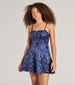 A sequin satin party dress features a square neckline. adjustable spaghetti straps. a lace-up back that attracts attention. and a flattering A-line short silhouette. Perfect for school dances. weddings. or parties.