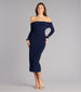 Make a casual-chic impression in this long sleeve ruched midi dress showcasing a folded off-the-shoulder neckline and a bodycon silhouette. Pair with heels.