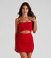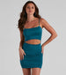 For looking and feeling like a total babe. Let your legs out in this sleeveless mini dress featuring an on-trend square neck. spaghetti straps. a cutout bodice. side ruched seams and a bodycon fit. Complete the look in strappy heels for a party.