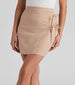 Create a casually chic impression with a mini skirt that is perf for every day! The skirt features a high-rise waist. a side lattice accent. and a short-length hem. The skirt is composed of a linen fabric that offers a relaxed fit with minimal stretch. Complete look with a crop top and heels.