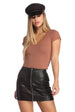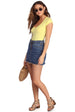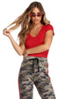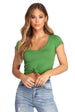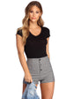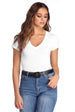 You can't go wrong with this casual cutie! This basic T-shirt features a V neckline and cap sleeves. Add a cute knot for a flirty look! Knit fabric offers a soft stretchy feel.