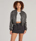 Slay casual cool vibes in a faux leather bomber that features a crew neckline. zipper front closure. side pockets. long sleeves. and a cropped oversized fit. Complete with a cargo skirt and lug boots for an edgy feel.