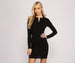 Rock a basic mini dress to layer with your favorite denim jacket or moto jacket this season. The dress features a crew neckline. a button-down front. long sleeves. and a mini length silhouette with a raw edge hem. The dress is composed of a ribbed knit fabric.