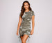 Get a casually fab look in this on-trend tie-dye mini dress. It features a crew neckline. short sleeves. ruched detailing down the sides with ties at the hem. and a short. curve-hugging silhouette. Style this dress with a denim jacket and sneakers.