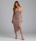 Strut looking casually sultry in this strapless midi dress that accentuates your curves and can easily be dressed up or down!