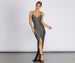 Wrap yourself with dazzling shine as you captivate them all in our Cathy dress! She features a sleeveless wrap V-neckline. spaghetti straps. ruching. a high off-center slit that shows off plenty of leg. and a wrap silhouette that embraces curves. The dress is composed of a glitter lurex fabric that offers a form hugging fit with a moderate stretch. Complete look with chrome heels.