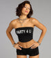 The invite is on your outfit. This Charli xcx strapless cropped tube top says it all with its bold "PARTY 4 U" graphic and bodycon fit—made for nights that never end early.