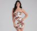 Hey beauty! Showcase your charm in this blooming floral bodycon dress. It features a sleeveless square neckline. spaghetti straps. chic ruching down the sides. and a short. curve-hugging silhouette. Style this dress with sparkly stud earrings and cute mules.