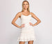 Charm in a floral dress that brings the gorge factor for your next brunch date. The dress features a sweetheart neckline with ruffled trim. adjustable spaghetti straps. a ditsy floral print. and a mini length silhouette with a multi-tiered ruffled detail. Complete your charming outfit with wedge heels and a sleek bracelet.