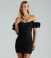 Don't be surprised by all the raised glasses when you stroll into the party in this adorable off-the-shoulder mini dress! It features a sweetheart neckline with non-slip grip lining. trendy puff short-sleeve cuffs. a padded and underwire bust. and ruched seams down the sides and back that flatter your curves along the bodycon silhouette. The dress is composed of a mesh fabric with a sewn-in knit lining. Complete the look with statement hoop earrings and heels.