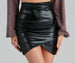 Look and feel like a total babe in this liquid leather mini skirt! It features a high-rise waist. wrapped front. and side ruching to accentuate your curves. Complete the look in suede booties.