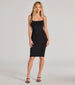 This bodycon midi dress features a sultry lower back cutout and back slit accent for a chic allure. The curve-hugging dress is made with a lined. soft. brushed knit fabric offering plenty of stretch for comfortable wear.