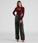 You'll be one chic mate in these faux leather pants featuring a sleek high-rise waist. back zipper closure. and a wide-leg silhouette on croc-embossed fabric with minimal stretch. Complete the look in a crop top and booties.