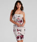 Bring the romance in this gorgeous and chic floral midi dress. It features a sleeveless square neckline. spaghetti straps. a midi-length. curve-hugging silhouette. and an all-over blooming floral print. Style this dress with sleek hoops and heeled mules.