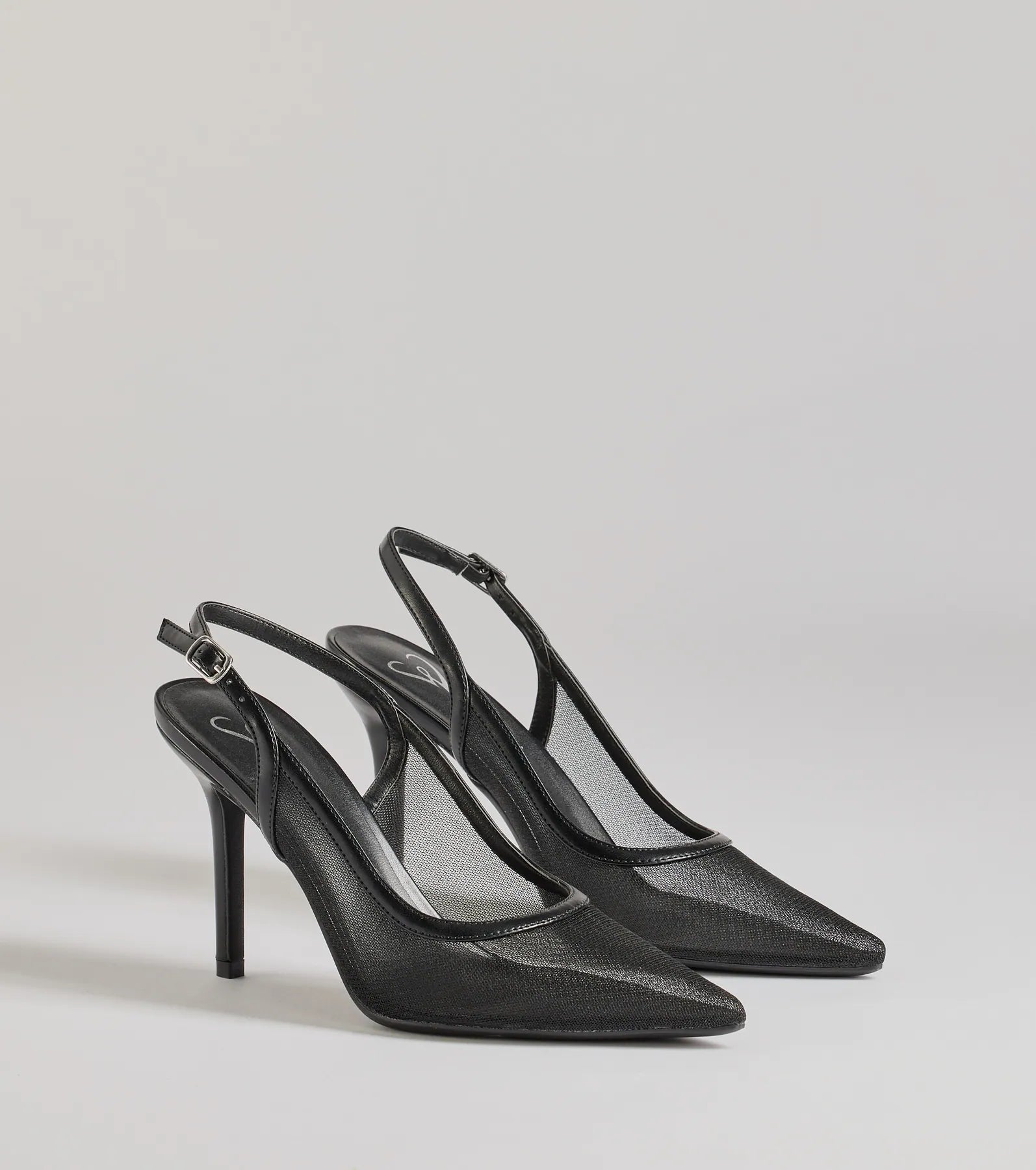 Chic Sheer Mesh Sling-Back Stiletto Pumps