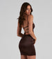 Have a total chic and sultry moment in this smooth satin mini dress! It features a sleeveless square neckline. spaghetti straps. an alluring open back with a lace-up strappy design. and a short. curve-hugging fit. Complete the look with a dainty layered necklace and strappy stilettos.