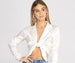 Chic with an edge. this satin tie front top can easily be layered on to make a trendy 'fit. It features a lapel collar. V neckline. tie front closure. and a cropped hem. The top is composed of a leopard print satin-like fabric with no stretch. Pair this top with mom jeans and strappy heels.