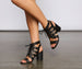 Step out in these booties to make a stylish step on your next brunch date! These versatile booties feature a lace-up front. a caged cutout design. an almond toe. and a trendy block heel. The booties are composed of a faux leather material. Complete look with a curve-hugging bodycon dress.