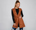 Make your way downtown in this stylish trench vest! It features a sleeveless. lapel collar neckline. a belted waist. side pockets. and a long-length hem. The smooth faux wool fabric will give any outfit a polished look. Style with a long sleeve top and jeans.