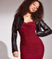 A faux leather moto jacket features long sleeves. a classic collar neckline. and an ultra-cropped hem that flaunts your figure. Layer over a basic tee and jeans for any occasion.