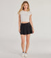 Every It girl needs this high-rise ponte skirt featuring an adjustable belted waist and a flirty pleated mini-length hem. Perfect for styling with boots.