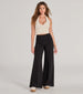 These classic and chic ponte knit trouser pants feature a high-rise elasticized waist with a hip-hugging fit and a wide-leg hem. The vertical seam running down the front of each leg will create a flattering silhouette you'll love.