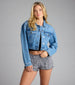 A classic trucker denim jacket you'll covet! This jacket offers relaxed long sleeves. a cropped hem. and classic jean jacket construction. It's perfect for day or night styling.