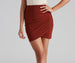 Classic and chic. this adorable mini skirt is perf for dressing up your everyday look. It features a high-rise waist. a faux wrap-front design. and a short. curve-hugging fit. Style this skirt with a cropped blouse and mules.