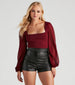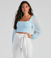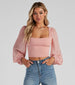 Embrace chic elegance in this long sleeve crop top. perfect for transitioning from day to evening glam. The form-fitting bodice and square neckline accentuate your figure and lend a timeless sophistication to any ensemble. Its long. sheer sleeves add a playful twist to the elegant shape. making it a versatile piece for high-waisted skirts or jeans. This crop top pairs effortlessly with layered necklaces and hoop earrings for a complete. stylish look.