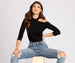 Show some shoulder in this trendy ribbed knit bodysuit! Pair with some high waisted joggers and strappy heels for that chic look we all love!