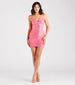 Steal the show and possibly some hearts in the striking Collen sequin mini party dress to make your radiant entrance! She features a sleeveless V-wired sweetheart neckline. sleek bungee spaghetti straps. a flattering bodycon silhouette. and a mini-length hem. The party dress is designed with a light-catching sequin striped pattern on mesh fabric and includes a stretchy knit lining. Complete the look in glam rhinestone earrings with the sequin mini dress for clubbing in Vegas or a birthday!