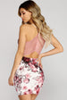 Begin to bloom the moment you step into this eye-catching floral-print mini! Dress has a deep V neckline. spaghetti straps. banded waist. cutout at back and of-the-moment lace detail with zip closure. Dress is made from a soft. moderately stretchy material.