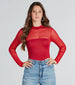 Look and feel like a total confident babe in this mesh long sleeve bodysuit! Take your style to the next level with this bodysuit featuring a sheer mock neckline. sheer fitted long sleeves. a knit form-hugging silhouette. and a cheeky bottom with snap button closures. Complete the look in sleek faux leather leggings for a concert!