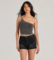 Make your crush stop and stare at you in this sleeveless crop top! It boasts a flirty strappy one-shoulder neckline. and a fitted crop hem. and is made from a stretchy rib knit fabric. Complete the look in a denim mini skirt for any casual plans!