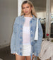 Layer on this denim shacket for effortless casual-cool ease! The shacket offers a button-up front closure. convenient pockets. and a relaxed silhouette. Pair with a crop tee and leggings.