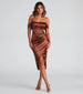 Leave the room breathless in the sweet Coraline formal dress at your next fancy affair! She stuns in an off-the-shoulder neckline with pleated sleeve cuffs and a sultry corset bodice with flexible boning. Her empire waist effortlessly shapes the wrap midi skirt designed to give you a curvy look. The dress is composed of silky smooth satin fabric with minimal stretch. Complete your look in a glam necklace set and heels.