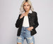 Cozy and casual will be your go-to vibe in this adorable sherpa denim jacket! It features a faux sherpa lined collar with a complete button-down front and a relaxed fit. Pair this jacket with black high rise skinny jeans for an effortless edgy look.